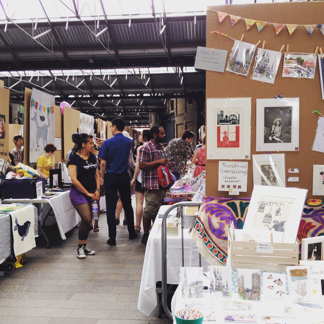 The last Sunday (9th July) I had my art fair debut as an exhibitor at the House of Illustration’s Illustrators Summer Fair! Since I don’t even have an online shop at the moment, i had been too reluctant (and a bit scared) to give a go at selling my stuff at any fair/market. I was like ‘What if I can’t make enough stuff to exhibit?’, ‘Are my illustrations good enough?’, ‘What if no one buys my stuff?’ etc etc… However, one day in May one of my talented artist friends, Olya Osipova, asked me and other friends (equally talented Sangeeta Bhagawati and Rachel Bone) if we were interested in sharing a table at the HoI fair. Everything seems achievable and exciting if you do with your friends, right? So I said yes.
