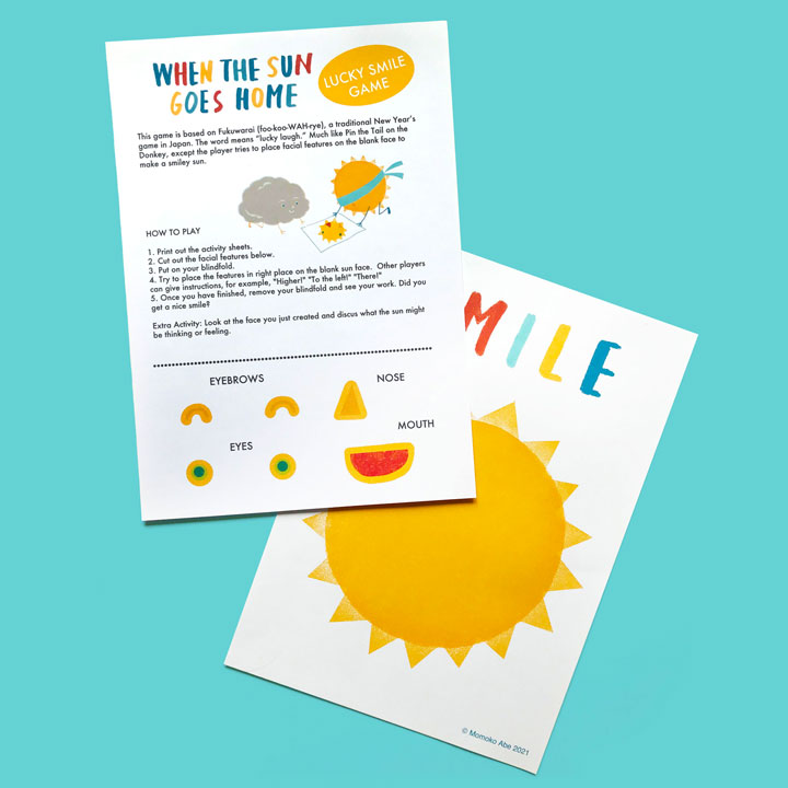 This game is based on Fukuwarai (foo-koo-WAH-rye), a traditional New Year’s game in Japan. The word means “lucky laugh.” Much like Pin the Tail on the Donkey, except the player tries to place facial features on the face to make a smiley sun. TIP: Print the sheets on thicker papers.