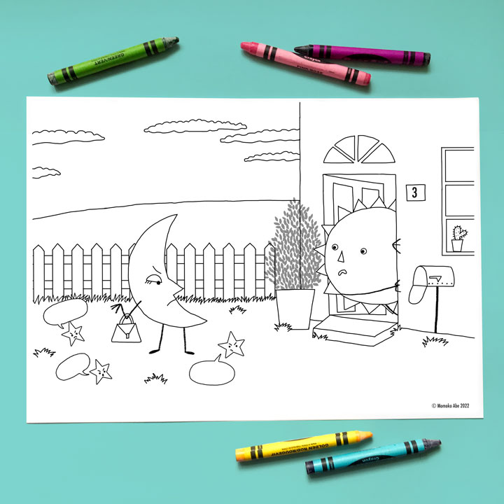 Free & fun, printable activity sheets based on my picture book, When the Sun Goes Home (Orchard Books). Free download. Just click the link below. If you have tried these sheets, I’d love to see what you’ve done! Share it on Facebook, Instagram and/or Twitter and tag me (FB – @MomokoAbeIllustration / IG & Twitter – @momokodooles)!