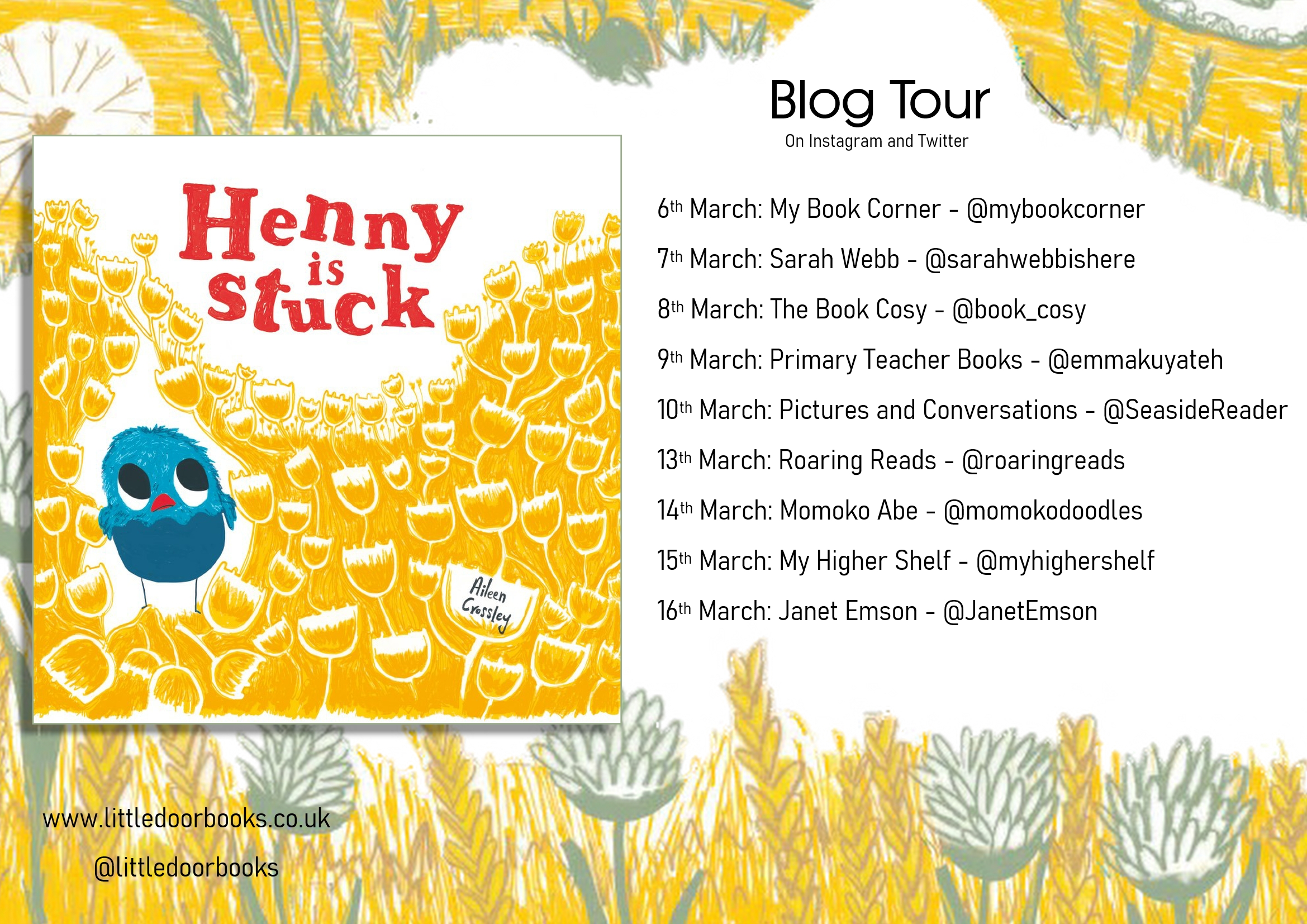 I’m taking part in the blog tour to celebrate the publication of my friend, Aileen Crossley’s debut picture book, Henny is Stuck (Little Door Books).